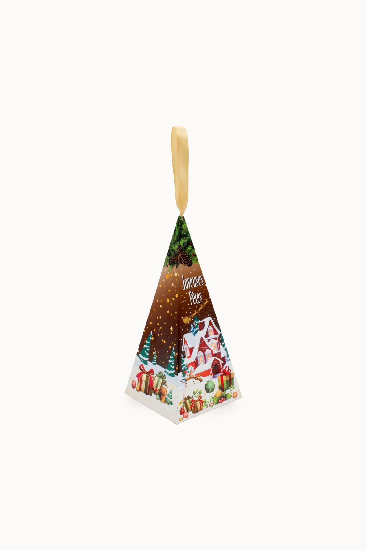 45% Chocolat noir à 70% de cacao minimum (masse de cacao, sucre, beurre de cacao, émulsifiant : lécithine de soja, arôme naturel vanille), sucre, AMANDES effilées, crème fraiche (LAIT), sirop de glucose, poudre d’amande, beurre (LAIT) demi-sel, miel, cubes de fruits confits, farine de blé (GLUTEN), écorces d’orange (1,2%).