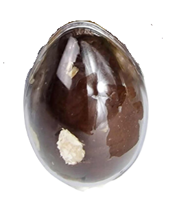 2/ Un délicieux petit œuf rempli de pâte de nougat au cacao écorces d’orange confite.