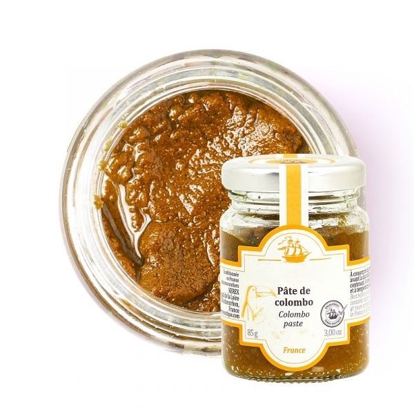 La pâte de colombo est fabriquée à partir d’un mélange de curcuma, de gingembre, de thym, de poivre, de piment et de moutarde. Ces ingrédients sont broyés et mélangés à de l'huile pour former une pâte aromatique, utilisée pour mariner viandes, poissons ou légumes, ajoutant ainsi une saveur caractéristique aux plats caribéens.